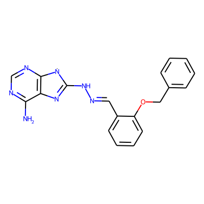 Nc1ncnc2c1N=C(NN=Cc1ccccc1OCc1ccccc1)[N]2| HBA: | 8 | RingCount: | 4 |