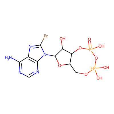 Nc1ncnc2c1nc(Br)n2[C@@H]1O[C@@H]2CO[PH](O)(O)O[P@](=O)(O[C@@H]3O[C@H](CO)[C@@H](O)[C@H]3O)O[C@H]2[C@H]1OAglycone: