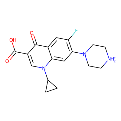 O=C(O)c1cn(C2CC2)c2cc(N3CC[NH2+]CC3)c(F)cc2c1=OSugarmoiety: