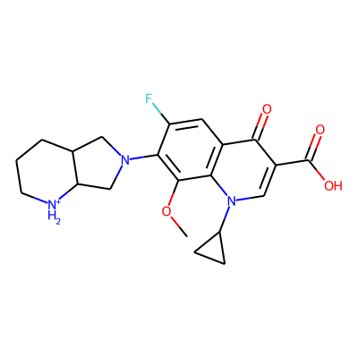 COc1c(N2CC3CCC[NH2+]C3C2)c(F)cc2c(=O)c(C(=O)O)cn(C3CC3)c12| HBA: | 7 | RingCount: | 5 |