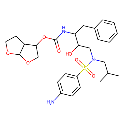 CC(C)CN(CC(O)C(Cc1ccccc1)NC(=O)OC1COC2OCCC12)S(=O)(=O)c1ccc(N)cc1| HBA: | 10 | RingCount: | 4 |