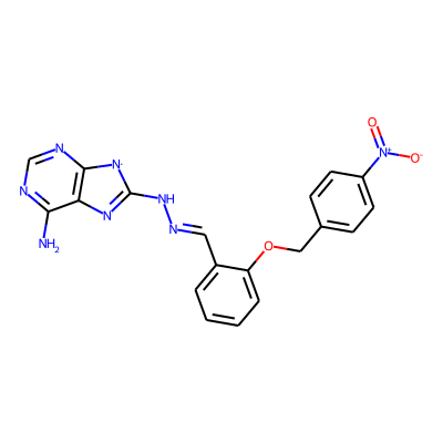 Nc1ncnc2c1N=C(NN=Cc1ccccc1OCc1ccc([N+](=O)[O-])cc1)[N]2| HBA: | 11 | RingCount: | 4 |
