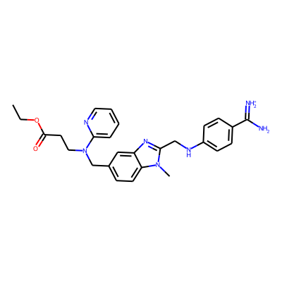 CCOC(=O)CCN(Cc1ccc2c(c1)nc(CNc1ccc(C(N)=[NH2+])cc1)n2C)c1ccccn1Sugarmoiety: