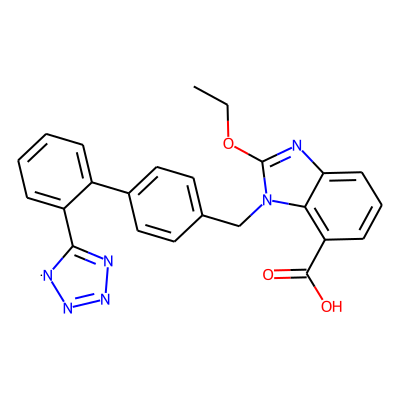 CCOc1nc2cccc(C(=O)O)c2n1Cc1ccc(-c2ccccc2C2=NN=N[N]2)cc1| HBA: | 9 | RingCount: | 5 |