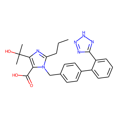 CCCc1nc(C(C)(C)O)c(C(=O)O)n1Cc1ccc(-c2ccccc2-c2nn[nH]n2)cc1Sugarmoiety: