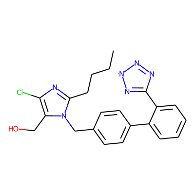 CCCCc1nc(Cl)c(CO)n1Cc1ccc(-c2ccccc2C2=N[N]N=N2)cc1| HBA: | 7 | RingCount: | 4 |