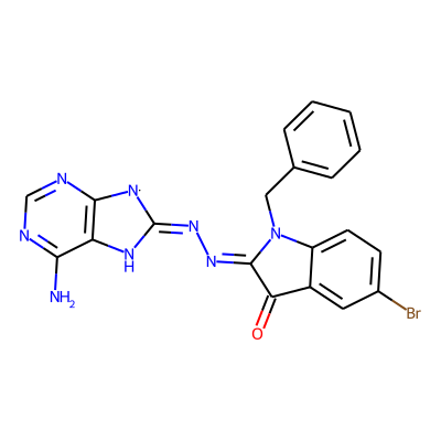 Nc1ncnc2c1[nH]/c(=N\N=C1/C(=O)c3cc(Br)ccc3N1Cc1ccccc1)n2[C@@H]1O[C@H](CO)[C@@H](O)[C@H]1OAglycone: