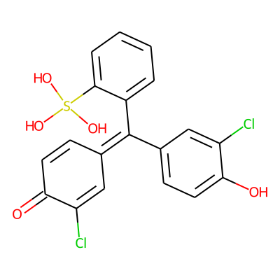 O=C1C=CC(=C(c2ccc(O)c(Cl)c2)c2ccccc2S(O)(O)O)C=C1Cl| HBA: | 5 | RingCount: | 3 |