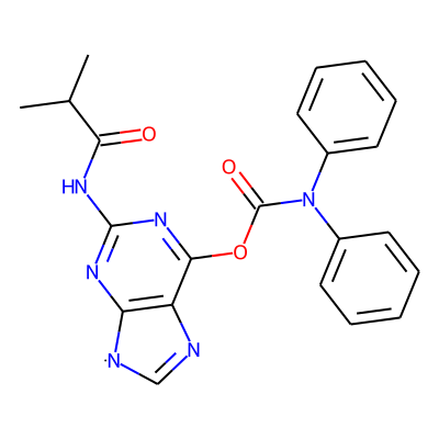 CC(C)C(=O)Nc1nc2c(c(OC(=O)N(c3ccccc3)c3ccccc3)n1)N=C[N]2| HBA: | 9 | RingCount: | 4 |
