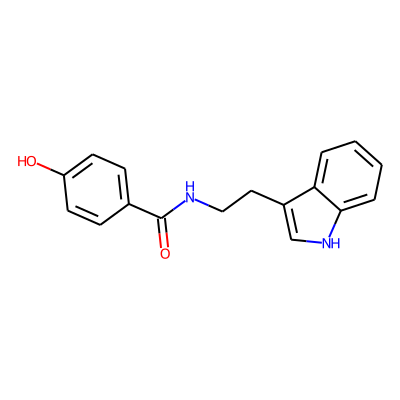 O=C(NCCc1c[nH]c2ccccc12)c1ccc(O)cc1| HBA: | 4 | RingCount: | 3 |