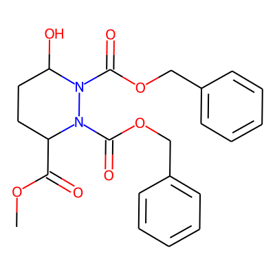 COC(=O)C1CCC(O)N(C(=O)OCc2ccccc2)N1C(=O)OCc1ccccc1| HBA: | 9 | RingCount: | 3 |