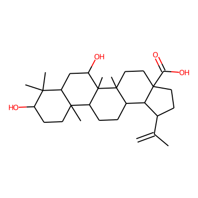 C=C(C)C1CCC2(C(=O)O)CCC3(C)C(CCC4C5(C)CCC(O)C(C)(C)C5CC(O)C43C)C12| HBA: | 4 | RingCount: | 5 |