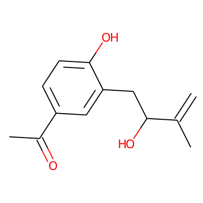 C=C(C)C(O)Cc1cc(C(C)=O)ccc1O| HBA: | 3 | RingCount: | 1 |