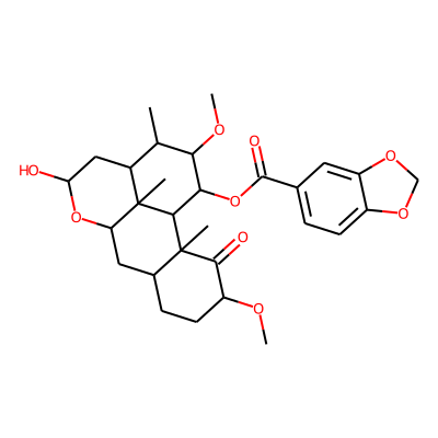 COC1CCC2CC3OC(O)CC4C(C)C(OC)C(OC(=O)c5ccc6c(c5)OCO6)C(C2(C)C1=O)C34C| HBA: | 9 | RingCount: | 6 |