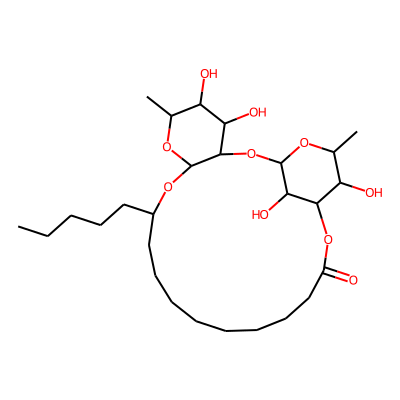 CCCCCC1CCCCCCCCC(=O)OC2C(O)C(C)OC(OC3C(O1)OC(C)C(O)C3O)C2O| HBA: | 10 | RingCount: | 3 |