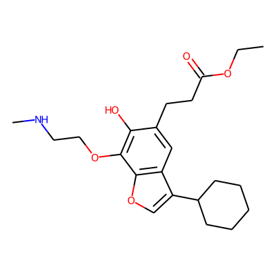 CCOC(=O)CCc1cc2c(C3CCCCC3)coc2c(OCCNC)c1O| HBA: | 6 | RingCount: | 3 |