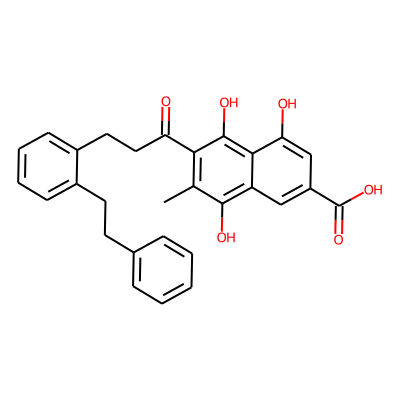 Cc1c(C(=O)CCc2ccccc2CCc2ccccc2)c(O)c2c(O)cc(C(=O)O)cc2c1O| HBA: | 6 | RingCount: | 4 |