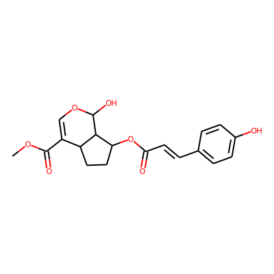 COC(=O)C1=COC(O)C2C(OC(=O)C=Cc3ccc(O)cc3)CCC12| HBA: | 7 | RingCount: | 3 |