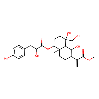 C=C(C(=O)OC)C1CCC2(C)C(OC(=O)C(O)Cc3ccc(O)cc3)CCC(O)(CO)C2C1O| HBA: | 9 | RingCount: | 3 |