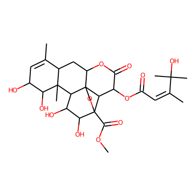 COC(=O)C12OCC34C(CC5C(C)=CC(O)C(O)C5(C)C3C(O)C1O)OC(=O)C(OC(=O)C=C(C)C(C)(C)O)C24| HBA: | 12 | RingCount: | 5 |