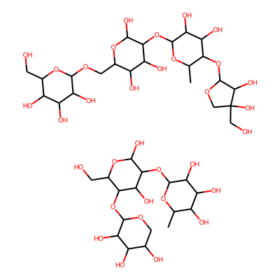 CC1OC(OC2C(O)OC(CO)C(OC3OCC(O)C(O)C3O)C2O)C(O)C(O)C1O.CC1OC(OC2C(O)OC(COC3OC(CO)C(O)C(O)C3O)C(O)C2O)C(O)C(O)C1OC1OCC(O)(CO)C1O