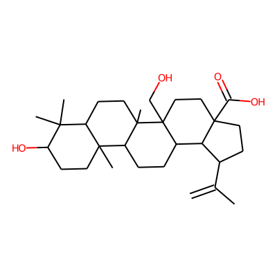 C=C(C)C1CCC2(C(=O)O)CCC3(CO)C(CCC4C5(C)CCC(O)C(C)(C)C5CCC43C)C12| HBA: | 4 | RingCount: | 5 |