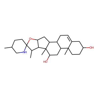CC1CCC2(NC1)OC1CC3C4CC=C5CC(O)CCC5(C)C4CC(O)C3(C)C1C2C| HBA: | 4 | RingCount: | 6 |