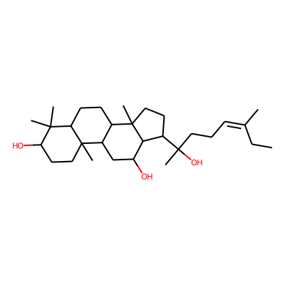 CCC(C)=CCCC(C)(O)C1CCC2(C)C3CCC4C(C)(C)C(O)CCC4(C)C3CC(O)C12| HBA: | 3 | RingCount: | 4 |