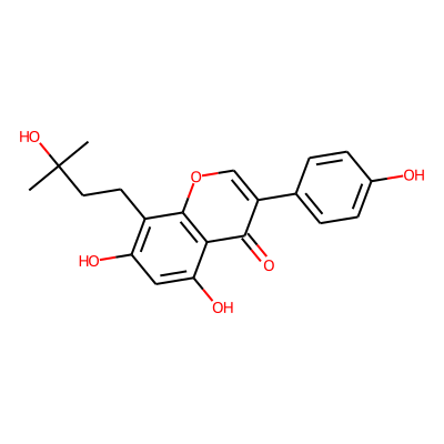 CC(C)(O)CCc1c(O)cc(O)c2c(=O)c(-c3ccc(O)cc3)coc12| HBA: | 6 | RingCount: | 3 |