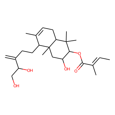 C=C(CCC1C(C)=CCC2C(C)(C)C(OC(=O)C(C)=CC)C(O)CC12C)C(O)CO| HBA: | 5 | RingCount: | 2 |