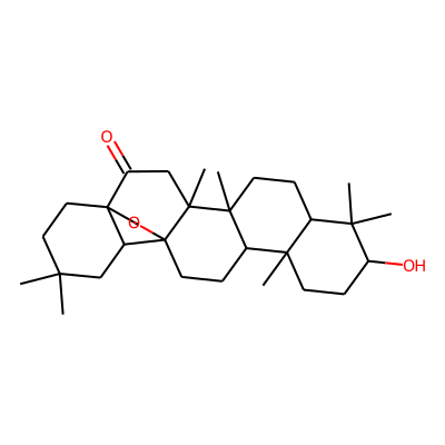 CC1(C)CCC23COC4(CCC5C6(C)CCC(O)C(C)(C)C6CCC5(C)C4(C)CC2=O)C3C1| HBA: | 3 | RingCount: | 6 |
