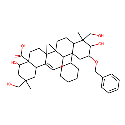 CC1(CO)CC(O)C2(C(=O)O)CCC3(C)C(=CCC4C5(C6CCCCC6)CC(OCc6ccccc6)C(O)C(C)(CO)C5CCC43C)C2C1| HBA: | 7 | RingCount: | 7 |
