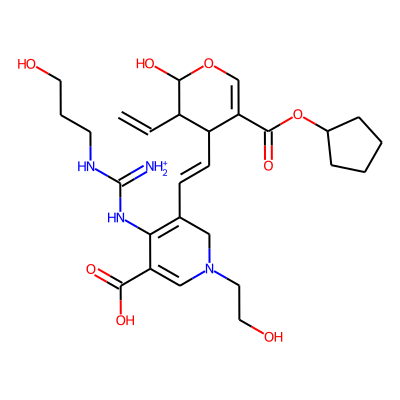 C=CC1C(O)OC=C(C(=O)OC2CCCC2)C1C=CC1=C(NC(=[NH2+])NCCCO)C(C(=O)O)=CN(CCO)C1| HBA: | 12 | RingCount: | 3 |