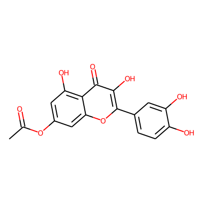 CC(=O)Oc1cc(O)c2c(=O)c(O)c(-c3ccc(O)c(O)c3)oc2c1| HBA: | 8 | RingCount: | 3 |